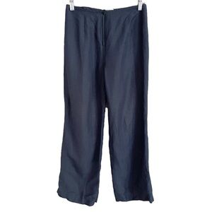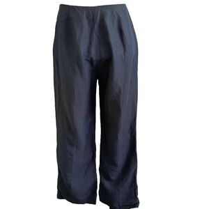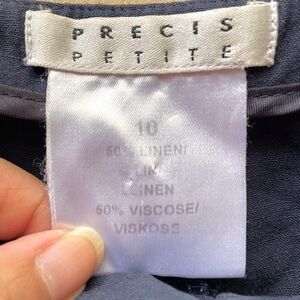 Precis Petite Navy Blue Linen Blend High Rise Wide Leg Cropped Pants - 6 🇬🇧