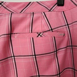 Pre-love plus-size Izod Cool-FX Stretch bermuda style golf shorts. Pink plaid with pockets.