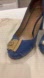 ๐ Preloved Salvatore Ferragamo Leather Blue Heels with Gold Detail Size 7.5 ๐