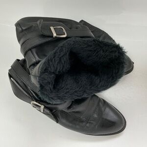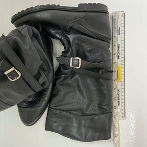 Preloved Slouchy Winter Leather Boots, Black, Size 9