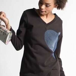 NEW WITH TAGS. This beautiful sweatshirt tunic from Preloved Toronto is made sustainably in Canada from up-cycled fabrics. High quality design and craftsmanship with this piece! This sweatshirt features a longer fit, and a heart crafted from vintage denim! This is a high end Canadian brand ๐จ๐ฆ! Get this cozy sweater tunic for a fraction of the new cost.