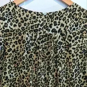 Premise Leopard pullover sleeveless top with ruffles on sleeves and chest and a button on the back of the neck to do up. Flowy and lightweight. 100% polyester. Length across chest 18.5", height from shoulder to bottom 23.5". In excellent condition