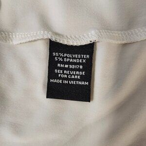 Premise Woman White Stretch Knit Top Size L – Unique Square V-Neck, Elbow Sleeve