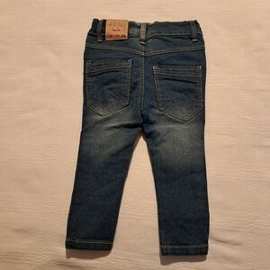 Prenatal toddler jeans. These cool jeans are made of a comfortable stretchy denim fabric with a beautiful wash. The jeans have a slim fit and therefore have a slim fit. Thanks to the stretch in the fabric and the adjustable waistband with snap button closure, these jeans are easy to put on and take off for your little one and the bottoms are comfortable to wear.