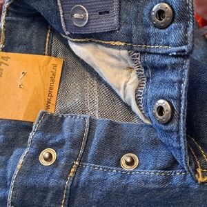 Prenatal toddler jeans. These cool jeans are made of a comfortable stretchy denim fabric with a beautiful wash. The jeans have a slim fit and therefore have a slim fit. Thanks to the stretch in the fabric and the adjustable waistband with snap button closure, these jeans are easy to put on and take off for your little one and the bottoms are comfortable to wear.