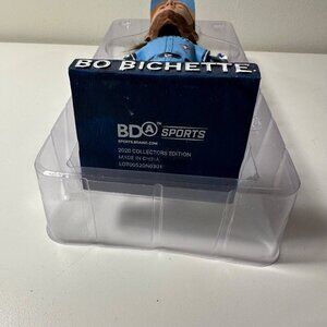 Preowned BO BICHETTE "BO FLOW" TORONTO BLUE JAYS BOBBLEHEAD. It has been stored in the original box. The box is damaged from storage and has dents. Please see pictures for details.