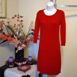 Preowned Eric Alexandre Unique Designed Stretchy Cardigan Knit Red Dress Long Sleeve Scoop Neck Spring Fall Winter Sweater Dress Tag Size XP fit for 8