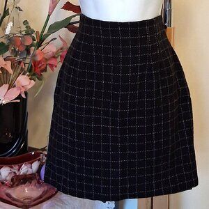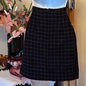Preowned Lino Catalano White Line Black 100% Wool Mini Lined Skirt Fall Winter Skirts Size could fit for 6 or 8