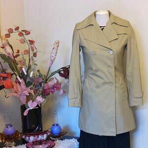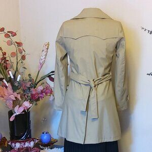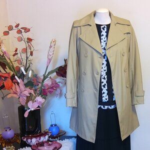 Preowned MARC MATTIS Women's Double Breasted Beige Trench Coats Mid-Length Belted Overcoat - Timeless Style, Windproof and Water-Repellent Outerwear for Any Occasion Size S could fit for Size 6 or 8