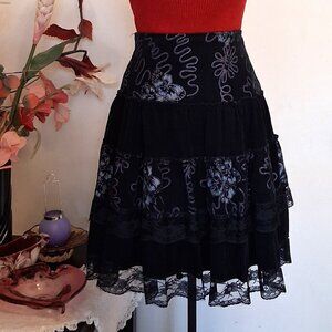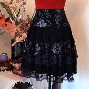 Preowned Navy Blue Ruffle Tiered A-line Flared Short Lined Skirt