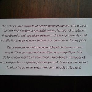 Not recommended to be used as a cutting board. Wash before first use. Do not soak. Allow to air dry thoroughly. Not dishwasher safe. Must be kept in dry conditions. Wipe occasionally with a small amount of vegetable oil. For long-term storage, store in airtight plastic. Made in China.