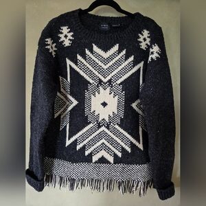 Press | Aztec SouthWestern Fringe Tribal Sweater, Size M
