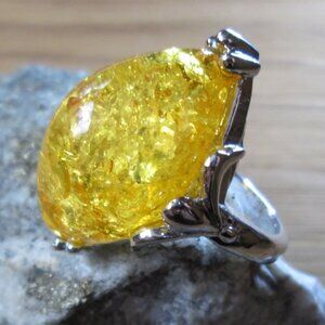 Pressed Baltic Amber Cocktail/Statement ring. Solid White Copper. Purchased 2008 and rarely worn.