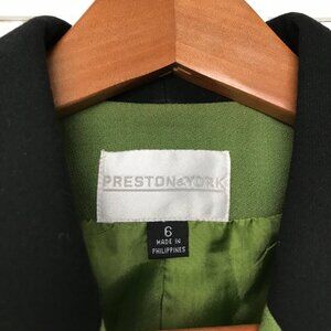 Preston & York Blazer Women’s Size 6 Green & Black Solid Open Front Sleeves