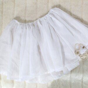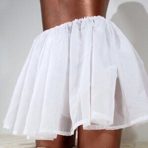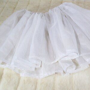 For anyone who loves to feel feminine and dance! A pretty ballerina tutu skirt in sheer white nylon. Very flirty! Excellent condition with no tags; appears NWOT. It measures from 30 to 50 inches at the waistband, so will easily fit an L, XL or 2X.