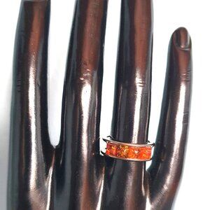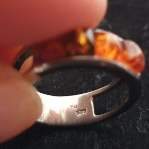 It is a solid sterling silver ring band decorated with 4 square Cognac Baltic amber stones. Natural Baltic amber has been placed in a solid but delicate silver setting.