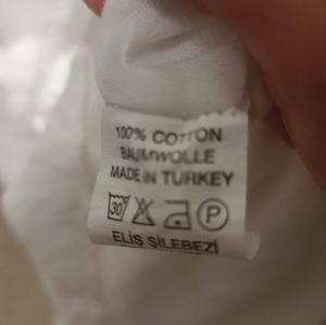 Soooo pretty! This piece is really beautiful. It is 100% cotton, has a braided belt with wooden beads, crocheted details around the hemline, and adjustable straps.