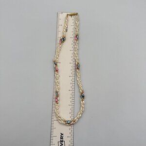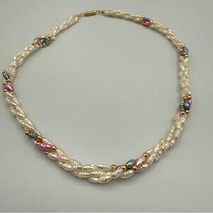 Pretty twisted faux pearl looking plastic beaded necklace with occasional gold and pastel colored beads