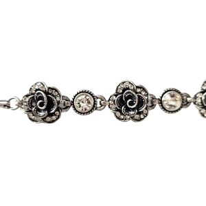 This show piece necklace features a floral pattern and lots of bling. A unique piece to add to your wardrobe.