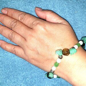 Wear this natural serpentine, aventurine, and fluorite silver beaded bracelet to promote wealth and prosperity. These rocks help you connect with the earth and can be beneficial in new beginnings.