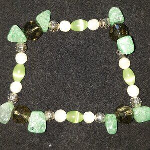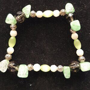 Pretty Hand Made Natural Serpentine Aventurine Fluorite Silver Beaded Bracelet