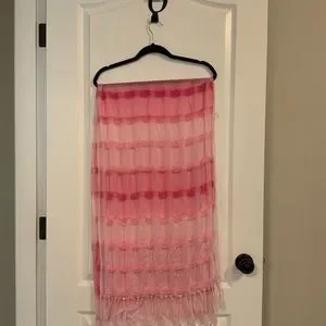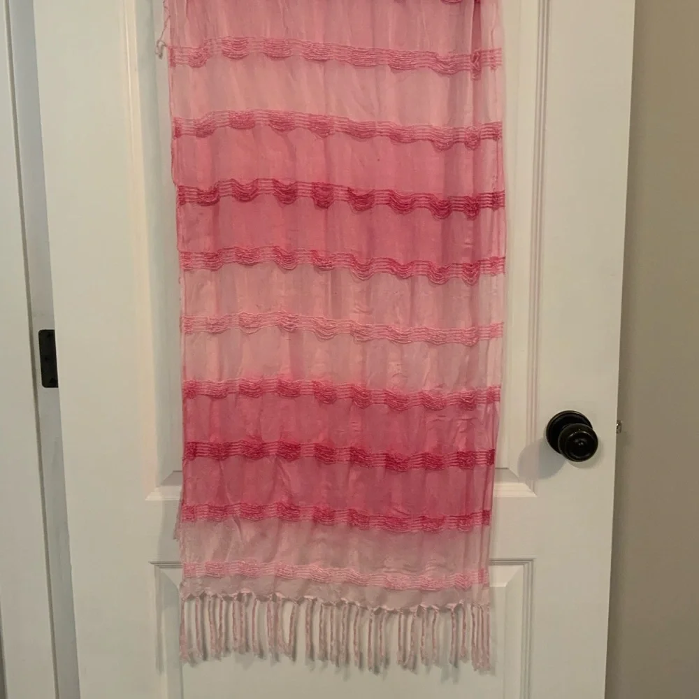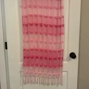 Pretty pink airy cotton scarf. 60” long including the tassels. Washes well, air dry.
