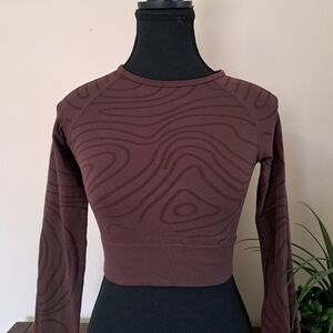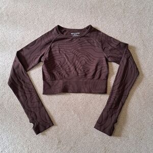 Pretty Little Thing Brown Activewear Top Sport Crop Top Long Sleeved Size Medium