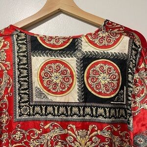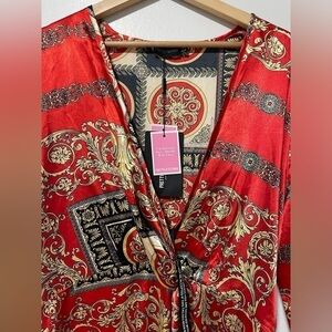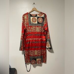 Pretty Little Thing Red Printed Satin Long Sleeve Wrap Dress