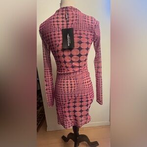 Pretty Little Things Size 6 Women’s MIDI Dress Dotty Mesh Long Sleeve Bodycon