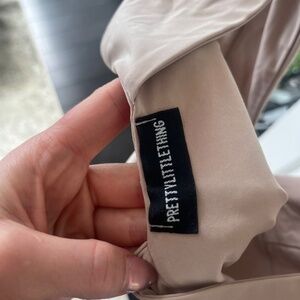 Pretty Little Things - plunge tan body suit - size 6uk