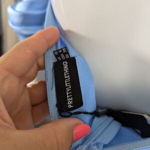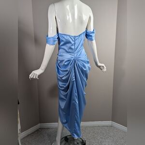 Pretty Little thing Blue Satin Draped Bardot Midi Dress 6 NWT