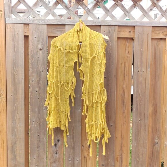 Pretty Mustard Yellow Fringe Scarf WOOL Artist Vibe Wrap LONG