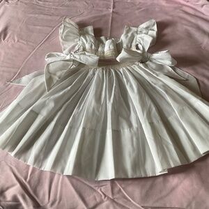 Pretty vintage girl’s smocked sundress with side ties. Smocking circles the chest. New. Full skirt. 21” long from back of neck to bottom of dress plus 5” hem, 11” across shoulders, smocking has 18” circumference and is stretchy. Beautifully handmade by my aunt in the early 1980’s. $35