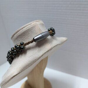 Pretty Vintage Hand Beaded Necklace Broncetone & Emerald Green Beads