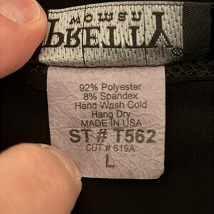 Excellent condition. Black 3/4 sleeve tunic with hi-Lo hemline. Fitted sleeve & upper body, flare to bottom. Made in Canada.