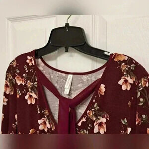 ❤️ Pretty Xhilaration Burgandy Floral Dress Small Bell Sleeve Long Sleeved