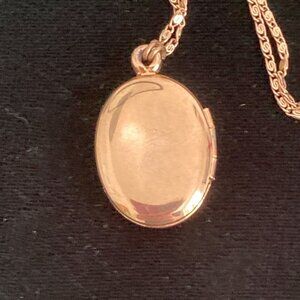 Created by the American company 1928, known for its quality antique jewelry reproductions, this vintage necklace features a lovely resin cameo on a locket mearuring about 7/8 inch. The finely detailed 18-inch chain closes with two ends that screw together, along with the 1928 hangtag. In very nice condition, with fine scratches inside the lock, which won't be visible - particularly when you add pictures! (s)