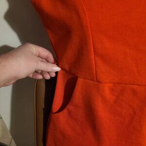 Pretty coral body con dress in the perfect shape and colour for spring. This is so cute. I love the detailed neckline. Features a zipper back closure and belt loops so you can wear it belted if desired. It's a heavier knit, so perfect for transition weather. Pair with heels for a night out or throw on flats and a cute crossbody for a more casual chic look. Size small.