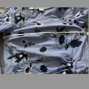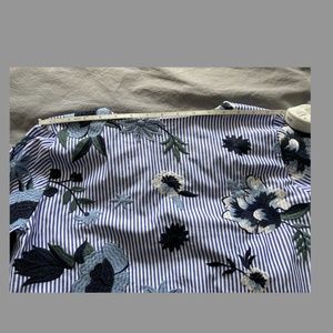 Pretty floral and striped top with puffed sleeves. 96% polyester, 4% spandex