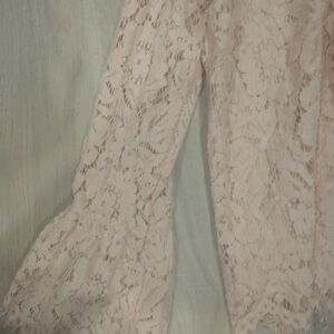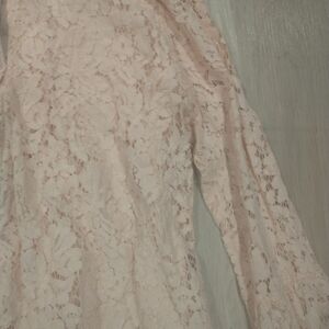 Mango all lace lined pretty peach top, perfect for parties, special occasions, outings, nice pleat at the back,. dress it up or down, size small. length 27 in , shoulders 16 in bust 15 in , sleeves, 23 in