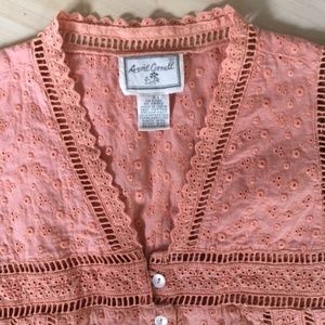 Pretty peachy-pink eyelet boho April Cornell sleeveless top