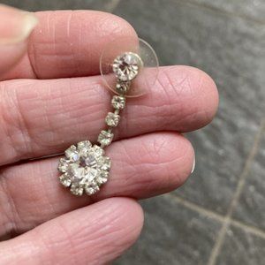 The necklace with three strand centrepiece measures 15-1/2 inches, the post earrings hang 1-1/4 inches. In great shape, with no stones missing.