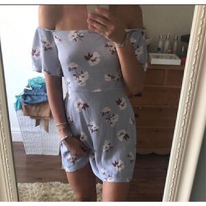 PrettyLittleThing Blue Off Shoulder Mini Dress Open Back Tie Floral Size 4
