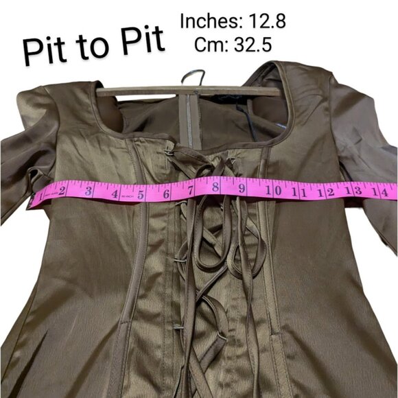 PrettyLittleThing| Bodycon Satin Chocolate Shoulder Pad Lace Up Dress |Size: 0