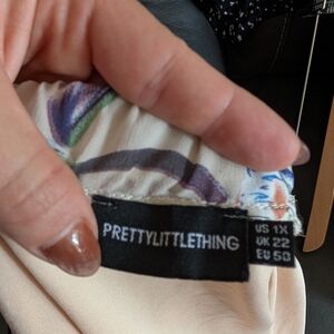 PrettyLittleThing Floral Sheer Wide Leg Pants- Cream Purple Vacation Holiday