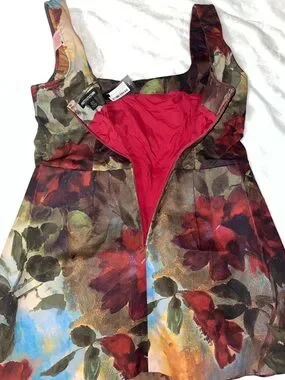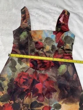 PrettyLittleThing Multicolor Floral Print Dress Structured Romantic Red Roses