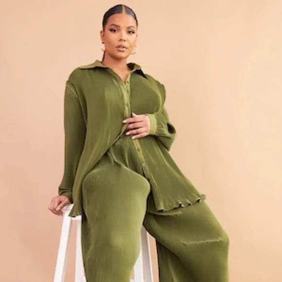 Oversized ribbed button-front shirt by PrettyLittleThing. Long sleeves and a classic collar. Flowy, relaxed silhouette for easy wear. Subtle textured finish for added interest. Loved so much but was just too big for me!