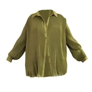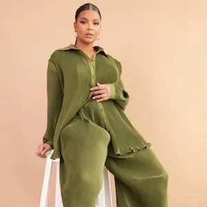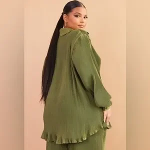 PrettyLittleThing Olive Ribbed Button-Front Shirt