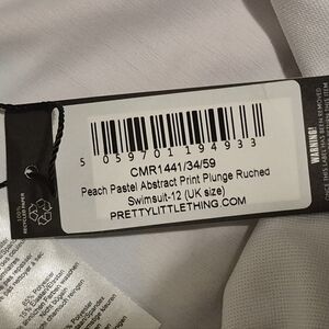 PrettyLittleThing Peach Pastel Abstract Print Plunge Ruched Swimsuit