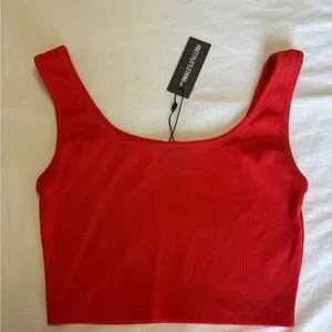 Elevate your style with the PrettyLittleThing red ribbed crop top. Perfect for any casual outing, this top offers both comfort and a trendy look.